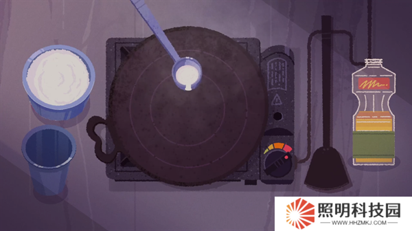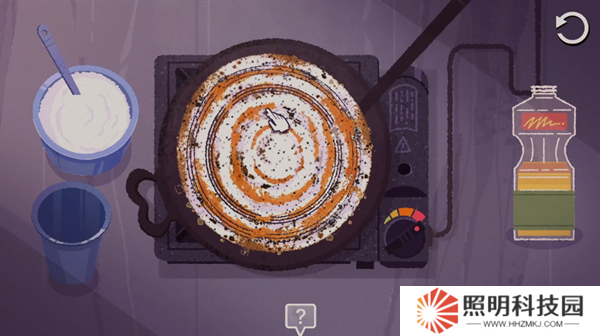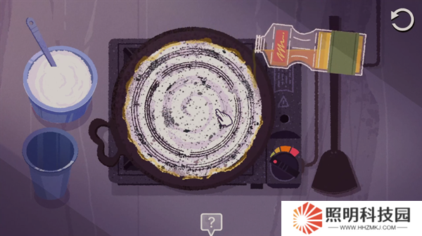 3、然后玩家們點擊拖動右側的油瓶在煎餅周圍到上一點。