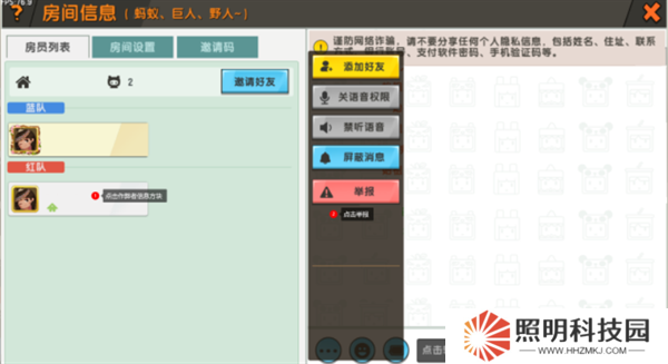 2、在房間信息左側玩家列表中,找到作弊玩家后點擊信息方塊,然后點擊進行【舉報】。