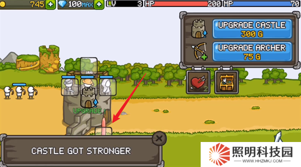 6、完成了波次的作戰之后,就會再次進入備戰狀態,點擊右上角的升級按鈕,就能夠對自己的弓箭手進行升級。