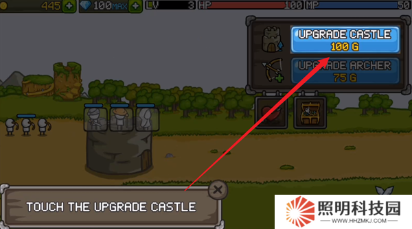 7、點擊右上角的城堡升級按鈕,能夠增加自己城堡的血量。