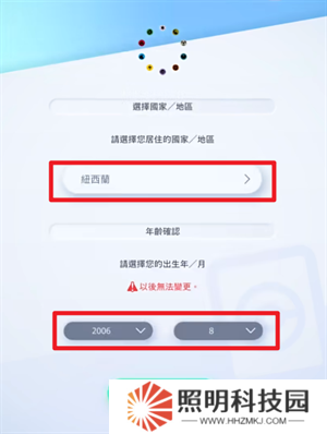 1、玩家們進入游戲之后,將會需要填寫各種資料,國家一欄里面選擇【新西蘭】,然后出生日期要填寫一個成年的時間點。