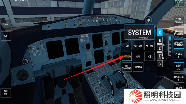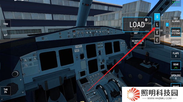 4、進(jìn)入到飛行器的第一人稱模式當(dāng)中,這里面存在著各種按鍵,每一種都會(huì)具有自己的功能,右側(cè)第一個(gè)是警報(bào)系統(tǒng),第二個(gè)是地面系統(tǒng),第三個(gè)是貨物,第四個(gè)是油量。