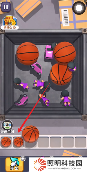 2、通過點擊,將框子里面的物品湊齊三個,就能夠將其進行消除。
