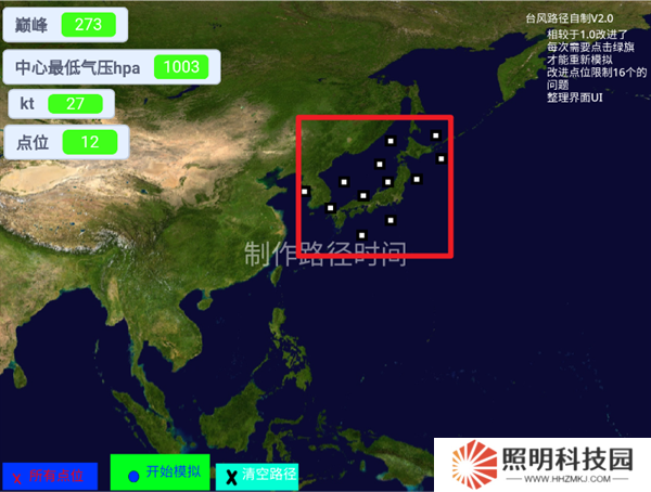 3.通過在地圖上面設(shè)置各種點位,你將能夠精確的控制臺風行進的路線,達成自己想要的結(jié)果。