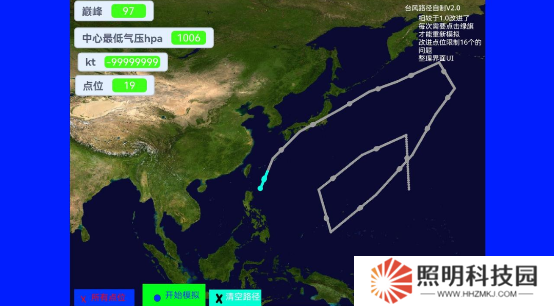 4、臺風會沿著點位來進行行動,并由此呈現(xiàn)出一個模擬的路線圖。