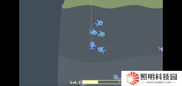 1、玩家們進入關卡之后,首先需要操控自己的小貓角色來進行拋竿的動作。