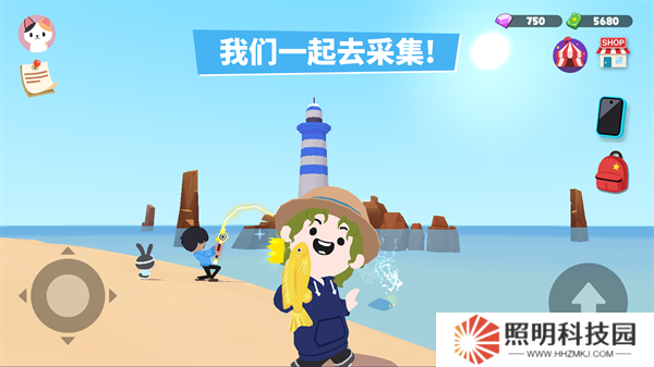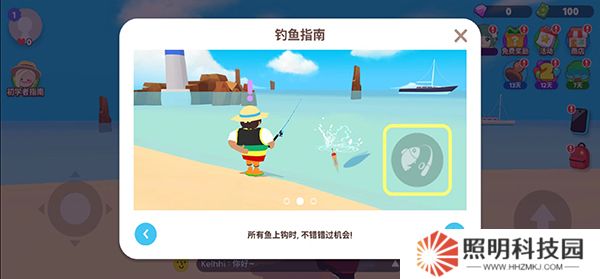 6、在海邊點(diǎn)擊右下角的釣魚按鈕就能夠開始進(jìn)行釣魚的操作了。