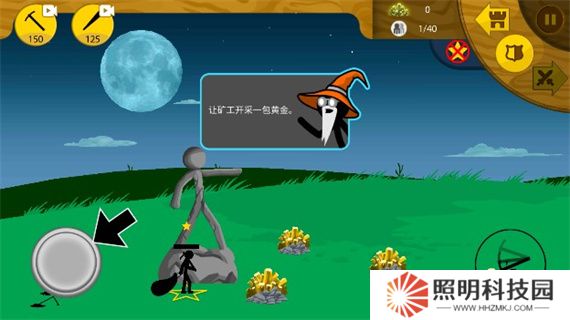 4、進(jìn)入關(guān)卡之后你可以派出各種火柴人來進(jìn)行作戰(zhàn),此外你還能夠通過左下角的輪盤來控制火柴人。