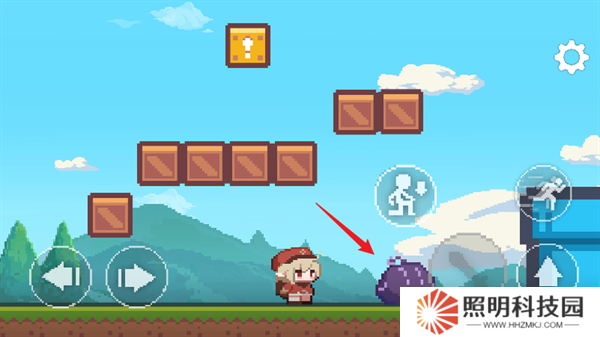 2、進入到場景內后,玩家們點擊左側按鍵控制角色移動,點擊右下角按鍵控制角色進行跳躍沖刺以及蹲下攻擊。
