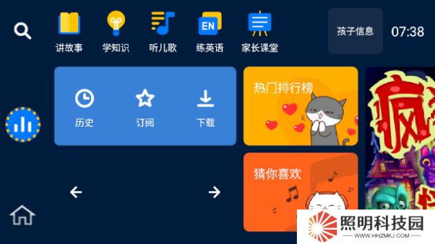 小辰講故事電視版上手:上面有講故事、學(xué)知識、聽兒歌、練英語、家長課堂,每一個欄目里面還是有很多資源的,重點(diǎn)是沒有廣告,這一點(diǎn)還是很贊的。