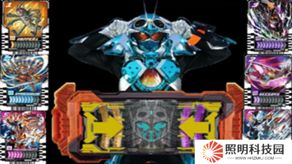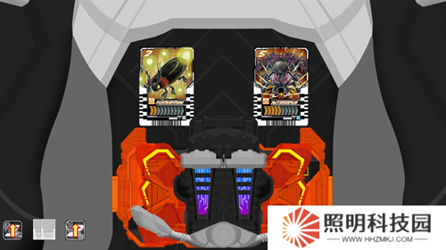 3、將選定的兩張卡牌放入腰帶模擬器中,然后點擊腰帶的右側(cè)按鈕,會聽到強烈的音效,并看到中間閃爍出五顏六色的光芒。