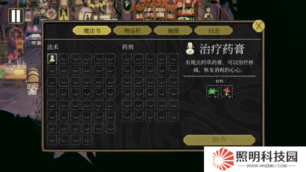 5、在魔法書的界面內部你將能夠查閱藥水制作、物品、地圖、日志等。