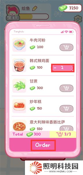 2、接著玩家們在在點餐界面中選擇自己想要的食物加入購物車,點擊Order進行購買。