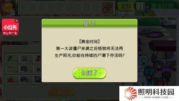 黃金時間:在第一波僵尸來襲后植物將無法生產陽光,需要玩家們在關卡中存活下來。