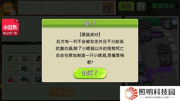 蘑菇派對:后方會有一列不會被攻擊并且不分敵我的復仇菇,除了小噴菇以外的植物死亡后會在原地制造一只小噴菇。