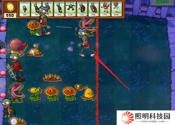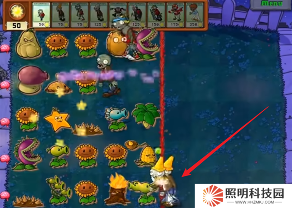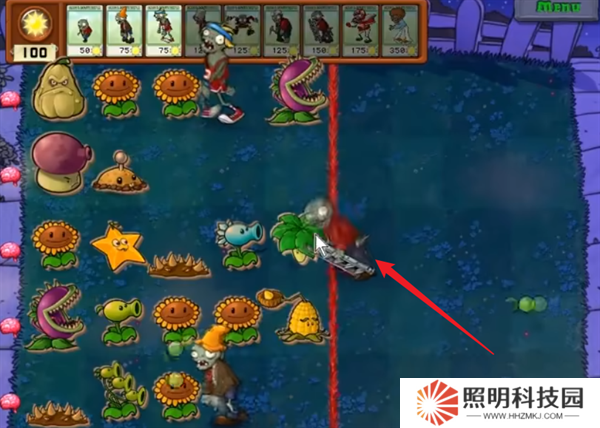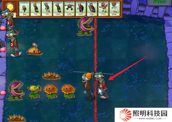 4、同理,積攢陽光在三路放置梯子僵尸。