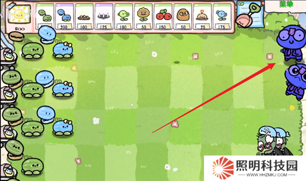 4、玩家們還可以在西瓜投手的格子上面進行冰瓜投手的種植,它們的冰西瓜除了能夠造成更大的傷害之外,還能夠將僵尸進行減速。