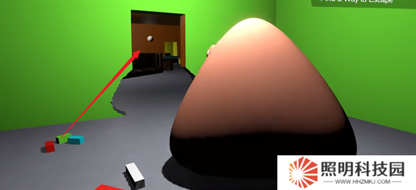 5、接下來去玩具室里面玩耍,通過將足球扔到房間外面,來讓答辯出去撿球。