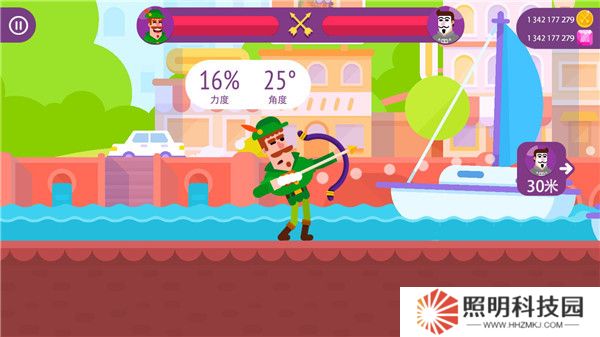 2、進入到戰斗場景之后,你會需要通過滑動屏幕決定射擊的力度以及角度,以此來控制角色發射攻擊攻擊敵人。