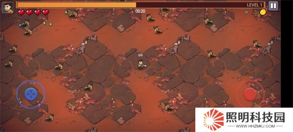 4、進入之后左邊藍色控制角色移動,右邊紅色是開火移動。