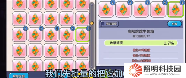 3、根據(jù)自己的需要,將刷取的配料批量選中,并將其升到六級。