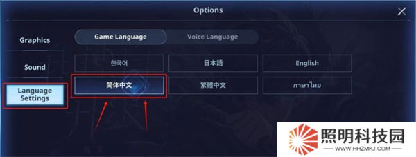 2、先在左側選擇【language】(語言),然后在右側將游戲語言設置為【簡體中文】即可。