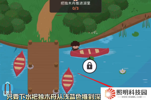 4、將所有的木舟都推到湖里之后,就能夠獲得金幣的獎勵。