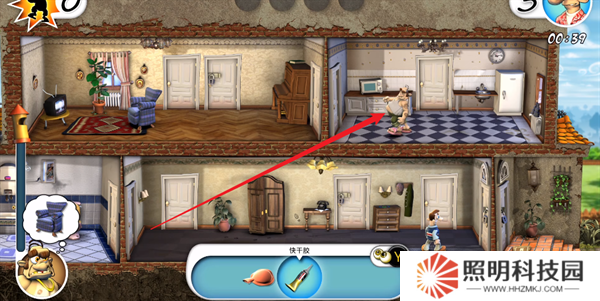 7、使用自己在房屋里面的物品進行相應的組合,你就能夠開始進行整蠱的行動。