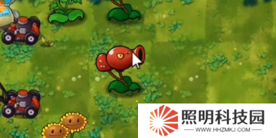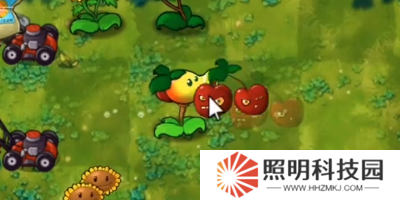 4、在另一株豌豆射手上種植櫻桃炸彈,讓其成為櫻桃射手。