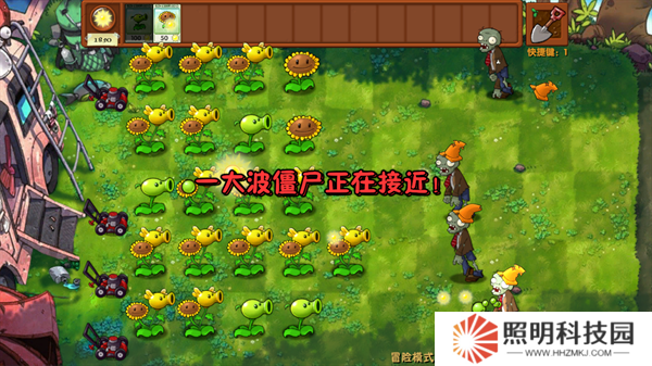 5、使用自己的植物與僵尸之間進行作戰,并由此面臨關卡最后的一**僵尸的挑戰。