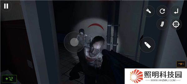 2、你需要使用移動輪盤以及射擊按鈕來操控自己的角色進行戰斗以及探索。