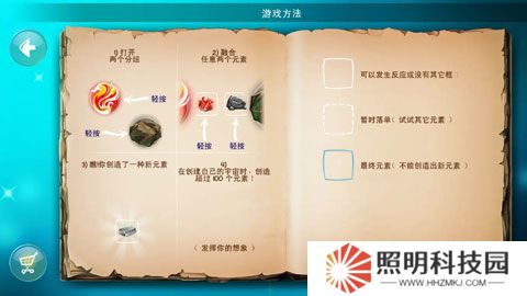 1.在游戲中通過混合火、水、土和空氣等元素,創(chuàng)造出宇宙中的各種物品和理念。