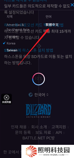 4、你將會就此進入到暴雪的網頁之中,往下滑動并將語言改為中文。