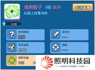 目前最強的輸出骰子之一,它可以在五秒內在場上放置一個地刺,持續兩秒,初始傷害每秒160,科技每升級一次將會提升120的傷害跟0.75秒的持續時間,滿級科技的地刺骰子有著760的秒傷和5.75秒的持續時間,能在短時間內造成大量傷害。