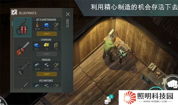 4.發(fā)展到后期你還可以制作出各種強(qiáng)大的槍械武器,并以此于地圖里面的喪尸一起進(jìn)行作戰(zhàn)。