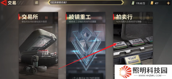 2、進(jìn)入【交易】之后,會(huì)存在三種不同類(lèi)型的交易模式,選擇最右側(cè)的【拍賣(mài)行】。