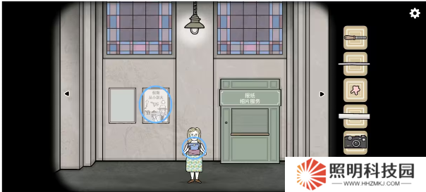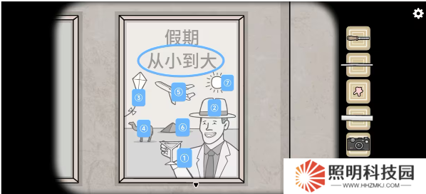 4、再點擊左側的海報,根據從小到大的提示依次點擊畫報場景里的物品獲得鑰匙。