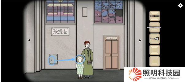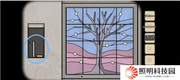 6、接著回去將玻璃板放在電話亭上方完成拼圖拿到手搖柄。