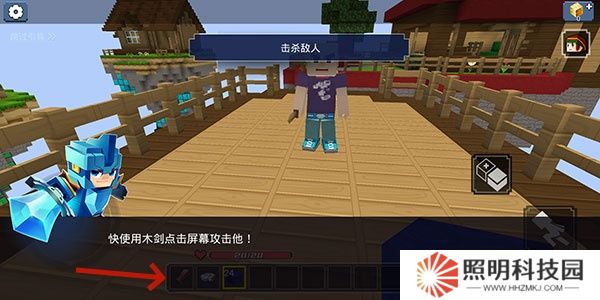 5、當(dāng)我們遇到敵人是,點(diǎn)擊木劍進(jìn)行裝備,點(diǎn)擊屏幕攻擊敵人。