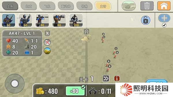 1.關卡之中存在著多種兵種供玩家選擇,每種兵種都有獨特的技能和屬性,你將根據(jù)敵情靈活搭配。