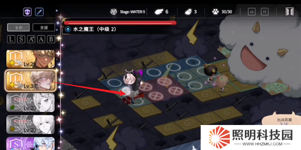 1、首先需要進入到一個戰(zhàn)斗關卡之中,將自己隊伍的角色放置到關卡的場景上面。