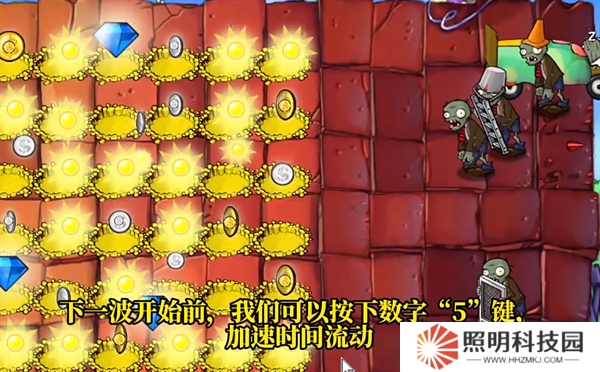 10、打完第一波旗,并處理完成當前場上的僵尸之后,就能夠開始進行刷鉆石的操作。