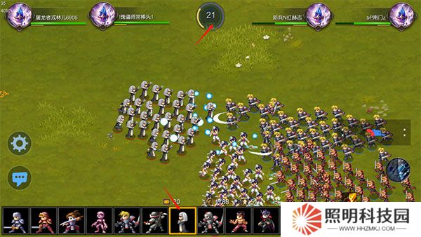 3、進入到場景內后,玩家們點擊下方的角色即可召喚兵種出戰。