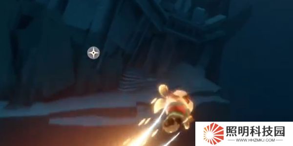 2.在大門前點燃設施,開啟大門,隨后往前走到指定位置,隨后向上飛切滑翔控制好方向,飛到上方指定地點,也可行走繞路前往,注意不要被飛石砸到。