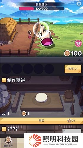 2、點擊面團輕松制作糖餅,完成挑戰:制作100個糖餅。