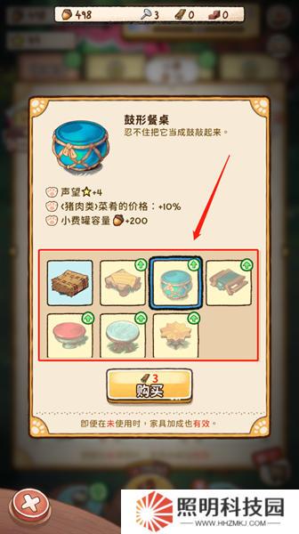 3、然后玩家們選擇需要升級類型的餐桌點擊購買即可升級。