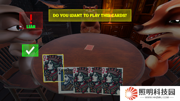5、來到你的回合之后,你可以選擇出牌或者質(zhì)疑上一家的出牌。