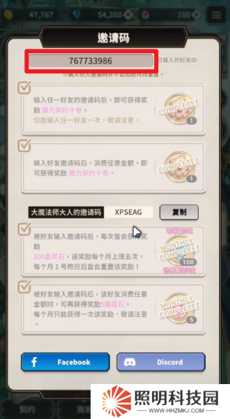 3、下方的這個(gè)邀請(qǐng)碼就是自己的邀請(qǐng)碼,讓其他的玩家們輸入這個(gè)邀請(qǐng)碼,自己就能夠獲取到100晶靈石,每個(gè)月上限5次,如果玩家們有空閑時(shí)間的話(huà),可以通過(guò)登出賬號(hào)并使用訪(fǎng)客登錄的方式來(lái)填寫(xiě)自己的邀請(qǐng)碼,從而快速的獲取到500晶靈石。