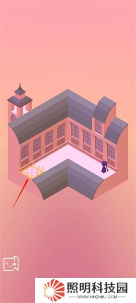 3、第二關則需要走到這個按鈕這里,讓這里的建筑掉下來,就可以走進去。