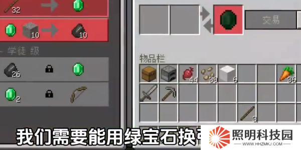 9.需要能用綠寶石換弓箭的村民,這需要再刷新一遍鍵,連鎖掉47個木頭,分解木棍后快速交易弓箭,順便交易一些箭矢。